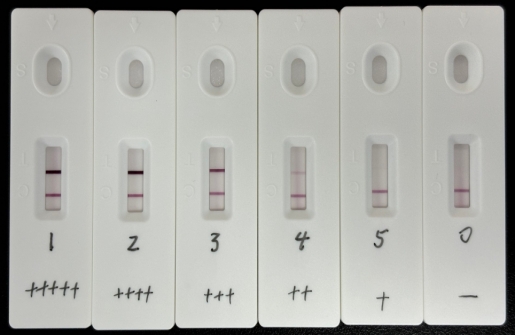 血紅蛋白(FOB)抗體(貨號(hào):EKY0069H)標(biāo)記彩色乳膠+血紅蛋白(FOB)抗體(貨號(hào):EKY0069G)劃膜(彩色乳膠層析配對組合2)