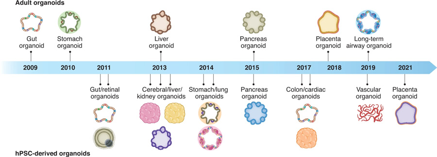 經(jīng)過(guò)十幾年的發(fā)展,越來(lái)越多的類(lèi)器官模型被成功建立,包括成體干細(xì)胞來(lái)源以及誘導(dǎo)多能干細(xì)胞來(lái)源。