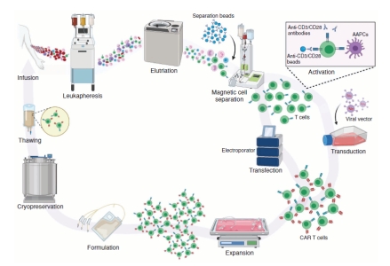 不同于HIV-1病毒改造后的慢病毒載體感染T細胞,NK細胞缺乏高效的慢病毒載體。目前,主要采用瞬轉工藝作為生產工藝。