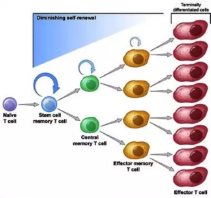 依靠IL-2的傳統(tǒng)培養(yǎng)中,激活擴增得到的T細胞中,完全分化的效應T細胞(TEF)占比更多。在使用IL-15部分替代IL-2的培養(yǎng)中,未完全分化的記憶T細胞(Tscm)的占比較僅以IL-2的顯著的多,研究表明,T細胞亞群的選擇是CAR-T細胞治療效果的基礎。在這方面,中央記憶T細胞(TCM)的CAR轉導似乎對體內有效的細胞擴張、存活和持久性至關重要,同樣數(shù)量細胞移植,移植Tscm的子代細胞數(shù)量較Tcm高10~100倍(Gattinoni L, Nat. Med.,2011)。此外,選擇幼稚或分化程度較低的CD8+T細胞進行轉導可以使輸注后T細胞增殖和體內持久性增加。