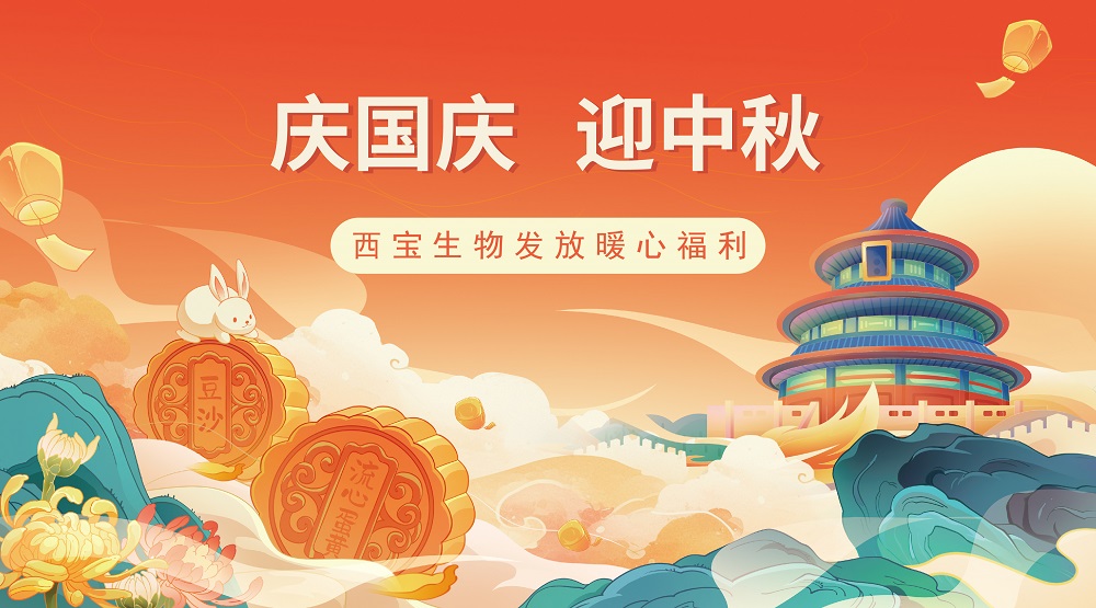 月滿中秋,家國同慶。值此佳節(jié),西寶生物謹(jǐn)向每一位員工、每一位客戶,致以最誠摯的祝福:愿皎潔的月光照亮您的團(tuán)圓之路,讓溫馨的陪伴填滿每一個幸福瞬間;愿您在新的日子里,諸事順?biāo)欤0槿缫獍部?;愿我們繼續(xù)攜手同行,在未來的道路上共創(chuàng)更多精彩!祝您中秋快樂,國慶吉祥!