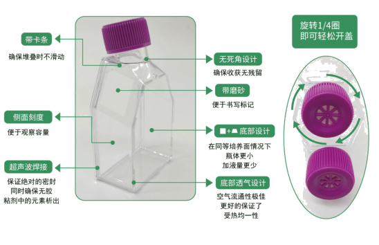 - 向上傾斜的頸部設(shè)計,更加易于移液管或細(xì)胞刮/鏟的進(jìn)入
