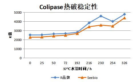 Seebio品牌和R司品牌共脂肪酶熱破穩(wěn)定性對比評估結(jié)果如下圖所示: