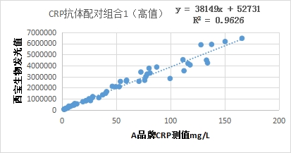 與A品牌CRP試劑臨床相關(guān)性R2>0.95;